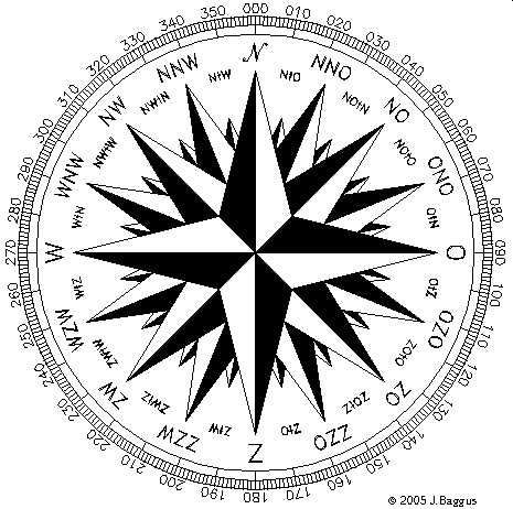 windrichtingen. Die heten, met de klok mee: Noordoost,