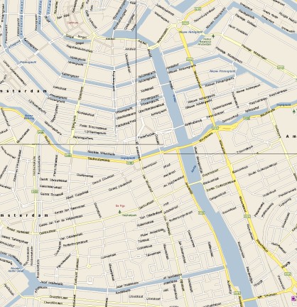 Nog spannender is het om tijdens het lezen de héle stadsplattegrond van Amsterdam erbij te nemen. Thomas en Zwaan zwerven door de stad en belanden via Kalverstraat en Damrak op het Centraal Station. Op de terugweg lopen ze via de Nieuwezijds naar de Wijdesteeg waar ze naar een leeszaal gaan. Aan het eind van het hoofdstuk komen ze bij de Vijzelgracht in de Fokke Simonszstraat. Daar, in ‘een kromme moordsteeg’, eigenlijk een sleuf naar de Lijnbaansgracht, treffen ze hun klasgenoot Ollie Wildeman, die met hen op de vuist wil (p. 118/128).  Staat die ‘kromme moordsteeg’ ook op de kaart?