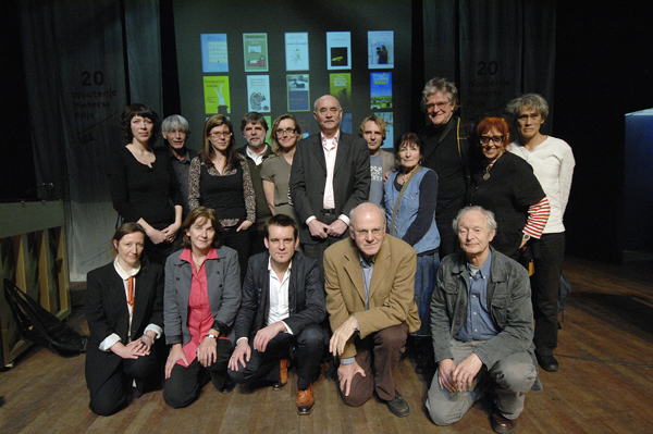 Zestien prijswinnaars!Op de voorste rij v.l.n.r. Geerten ten Bosch, Joke van Leeuwen, Bart Moeyaert, Toon Tellegen, Guus Kuijer.