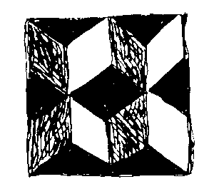 Is het zwarte vierkantje in het midden de onderkant van de bovenste kubus? Of is het de bovenkant van de onderste kubus? Schijf een gesprek waarin twee mensen daar ruzie over krijgen.