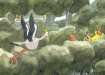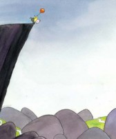 Kindje Big rent met zijn ballon naar een rotspunt, een klif. Waarom rent hij weg, denk je? Wat doet hij bij de klif? Valt hij of springt hij? En hoe loopt het af met hem? Voor oudere kinderen kunt u het woord cliffhanger gebruiken: de gebeurtenis waarmee een hoofdstuk afloopt, en die zo spannend is dat je meteen het volgende hoofdstuk wilt lezen: hoe loopt dit af? Letterlijk betekent het woord klifhanger: de hoofdpersoon van het verhaal bungelt aan een rotspunt en dreigt te pletter te vallen. Dat zie je bijvoorbeeld gebeuren in Kuifje in Tibet. Over de slang en de ooievaar